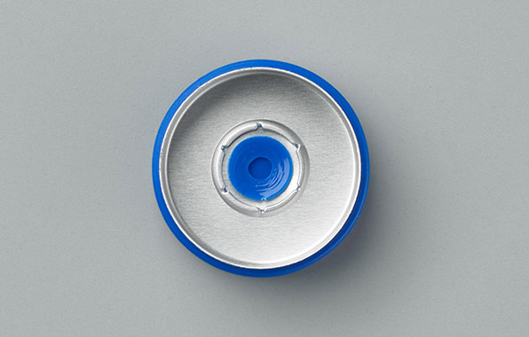 Opened by pulling the pull-top on the upper surface (Cap type which is detached from the container). As it is constructed entirely from aluminum, at the time of disposal it can be completely separated into container, rubber stopper and cap and disposed of accordingly.